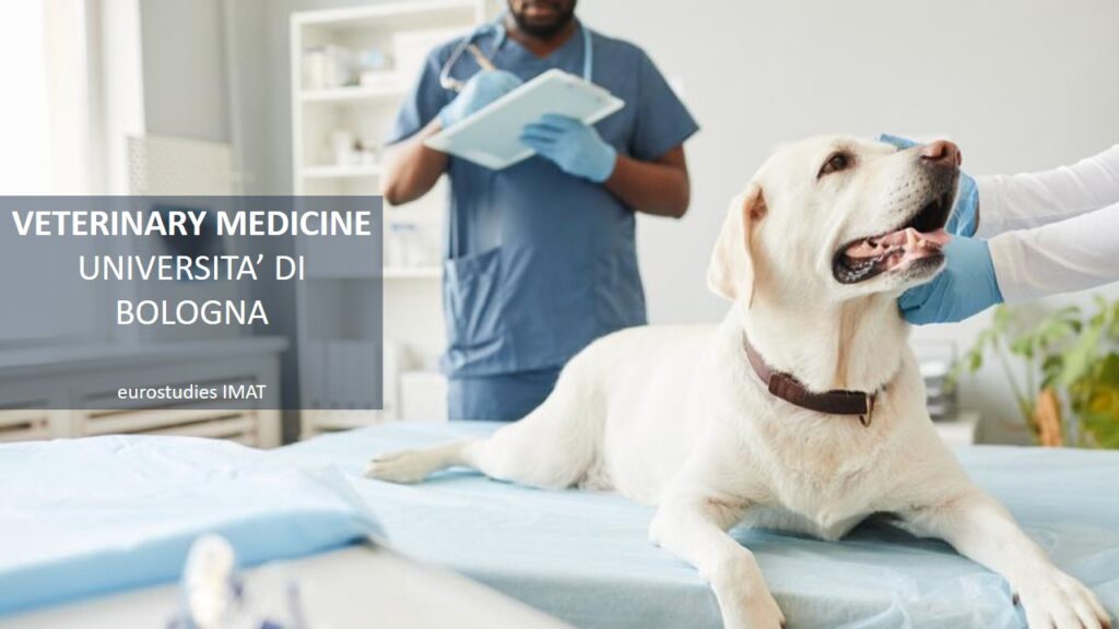 Η εισαγωγή στην αγγλόφωνη κτηνιατρική σχολή στη Μπολόνια Bologna γίνεται μέσω του ΙΜΑΤ τεστ -International Medical Admissions Test, ένα τεστ πολλαπλής επιλογής 60 ερωτήσεων σε βιολογία, χημεία, μαθηματικά, φυσική, γενικές γνώσεις και τεστ λογικής. Οι εξετάσεις ΙΜΑΤ διεξάγονται κάθε χρόνο σε αρκετά εξεταστικά κέντρα σε όλο τον κόσμο μεταξύ των οποίων τα εξεταστικά κέντρα της Αθήνας και της Λευκωσίας.